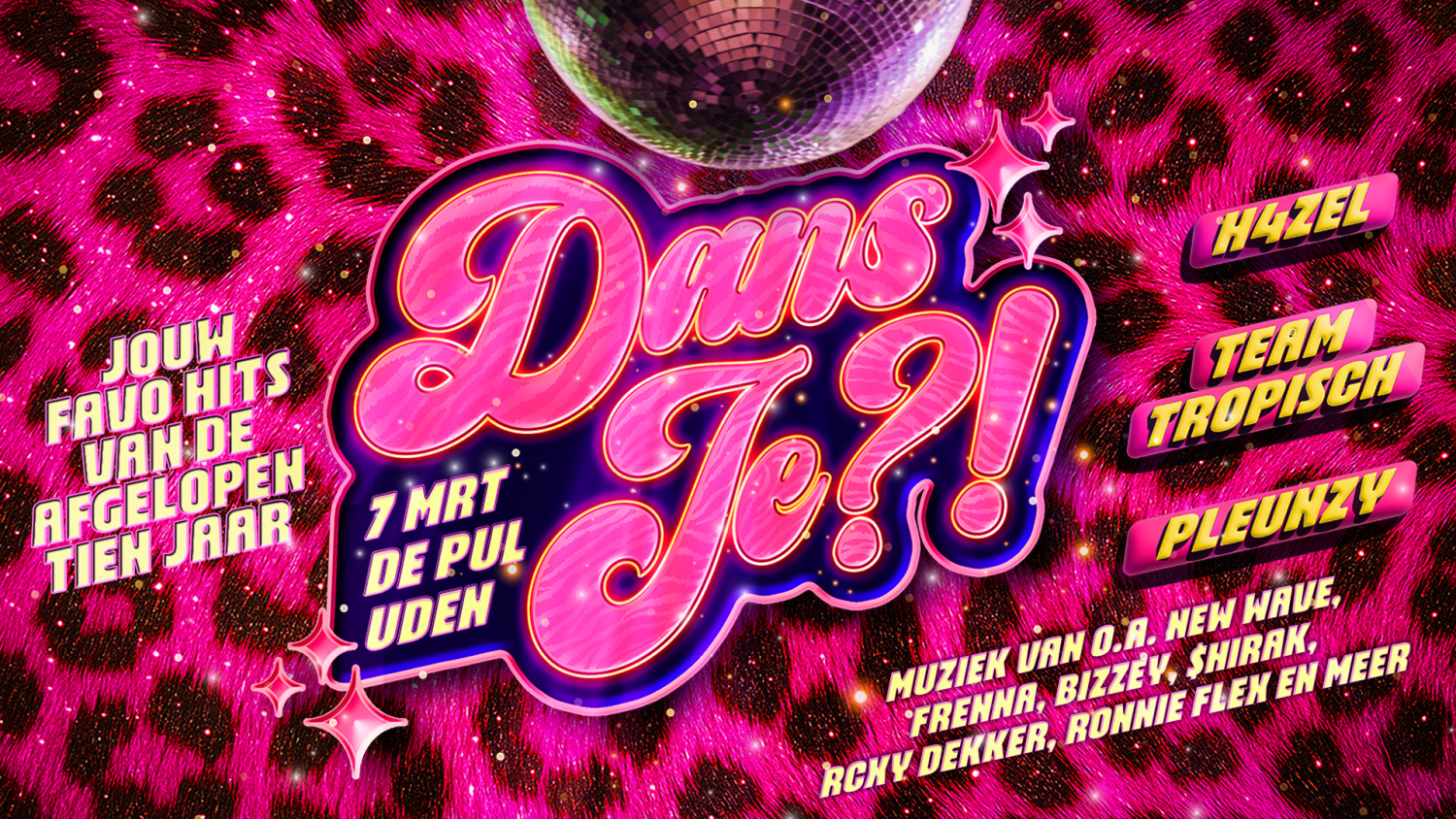 Het wordt opnieuw heet, fout en lekker dansen in De Pul. DANS JE?! is jouw party met een roze randje, glimmende heupen en tracks waar je niet stil kan blijven staan.
